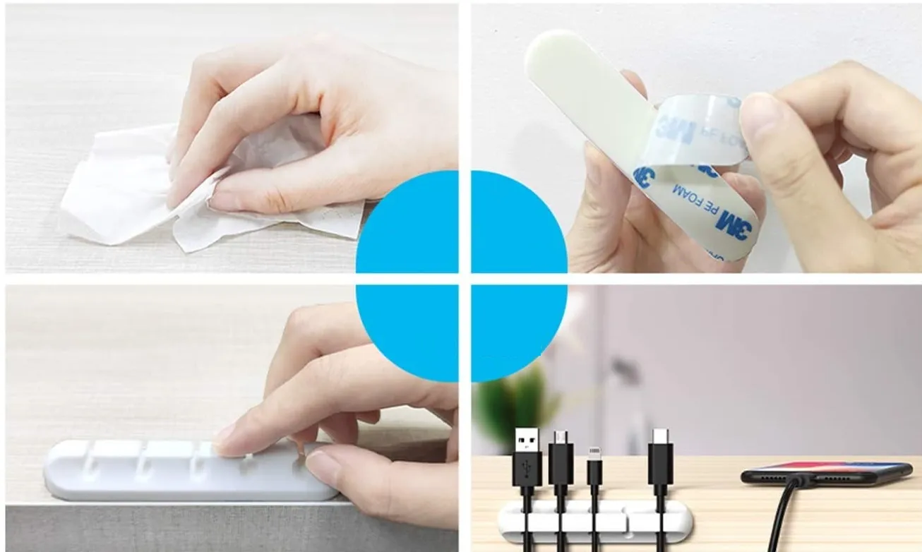 Zastosowana oryginalna taśma 3M pozwala na stabilne mocowanie na wielu rodzajach powierzchni oraz mocne utrzymanie kabli o większej średnicy.