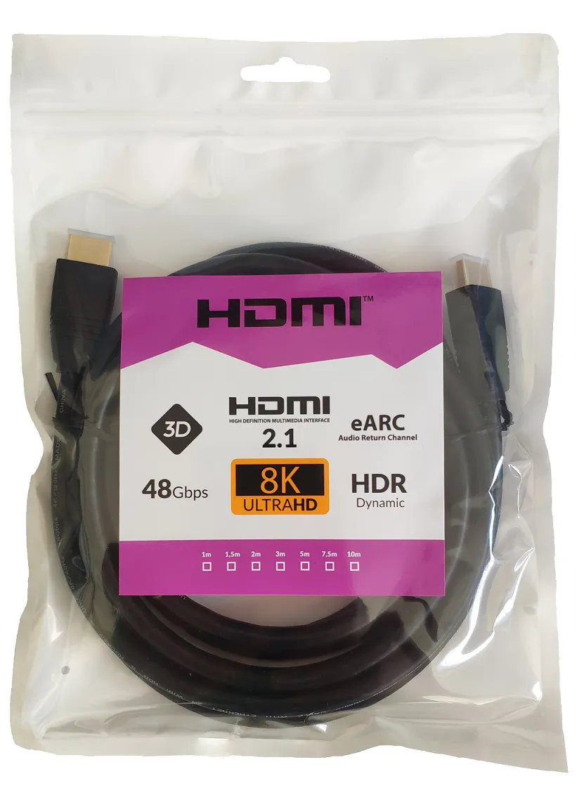 Kabel wspiera najnowszy standard 2.1 (kompatybilny również z poprzednimi wersjami) zapewniając najwyższą jakość obrazu nawet 8K oraz dźwięku dla wymagających użytkowników.