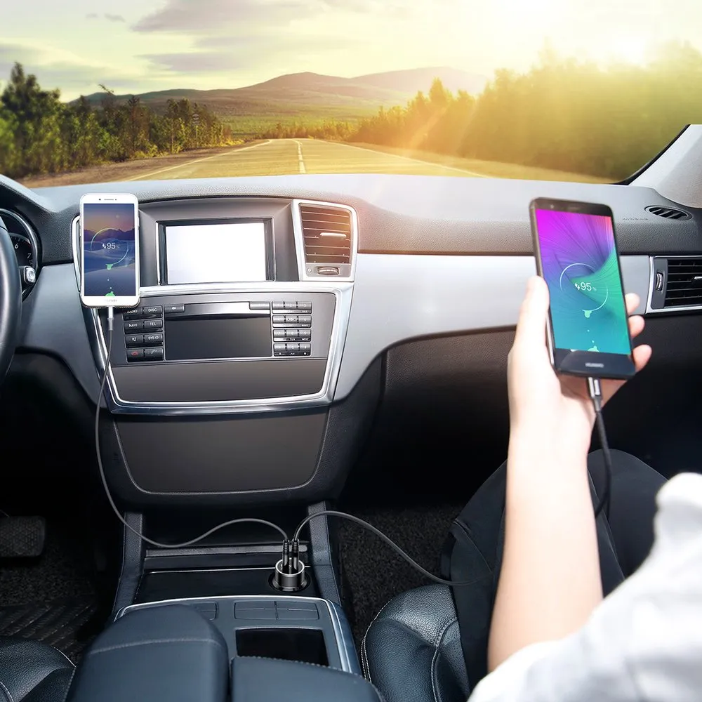 Ładowarka do auta o napięciu wejściowym z zakresu 12-24V kompatybilna z 99% portami zapalniczek samochodowych.