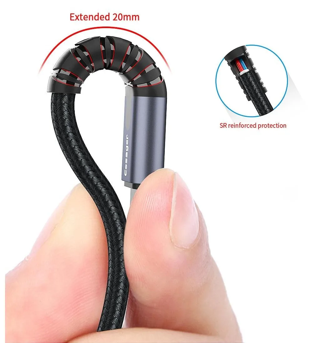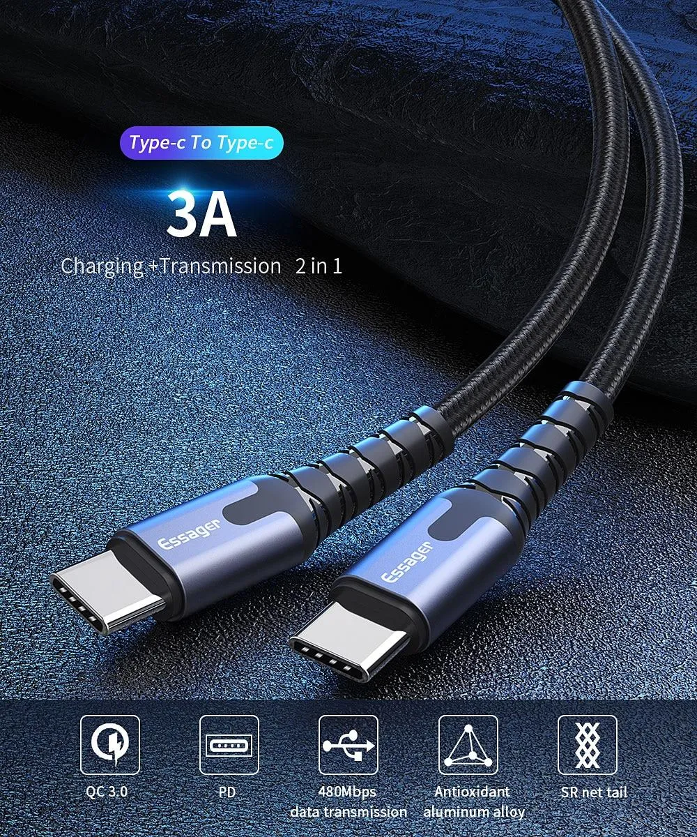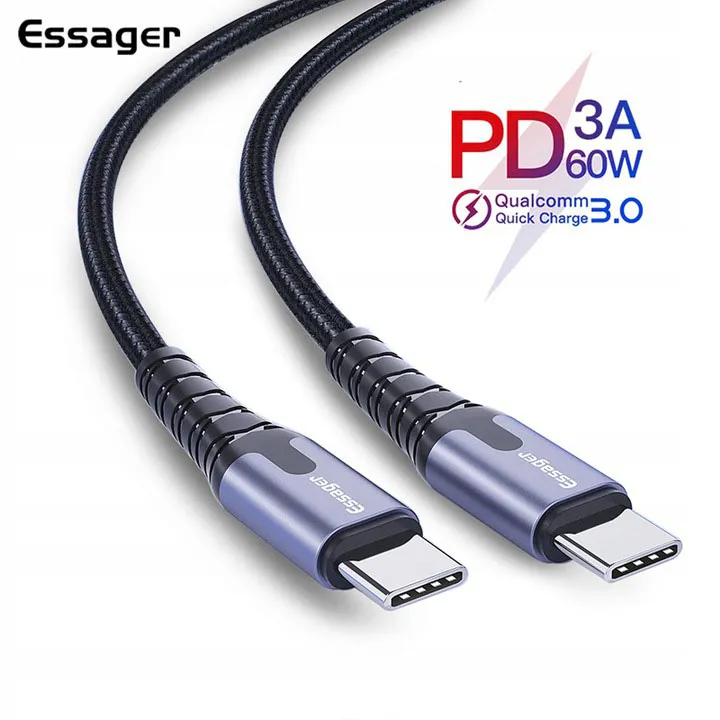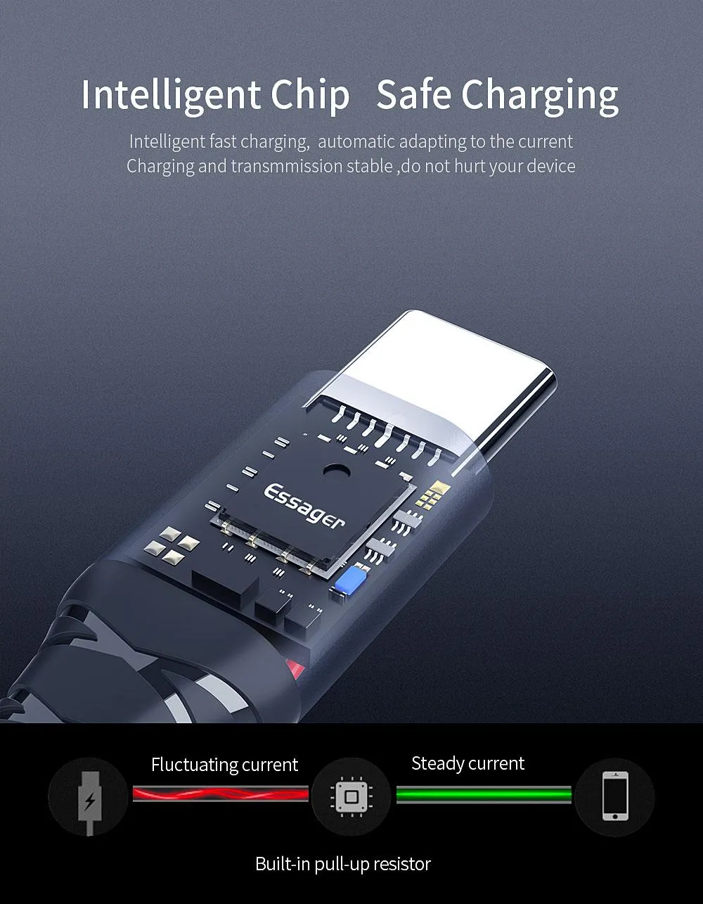 Kabel Essager USB-C wspiera transfer danych oraz szybkie ładowanie QC 3.0.