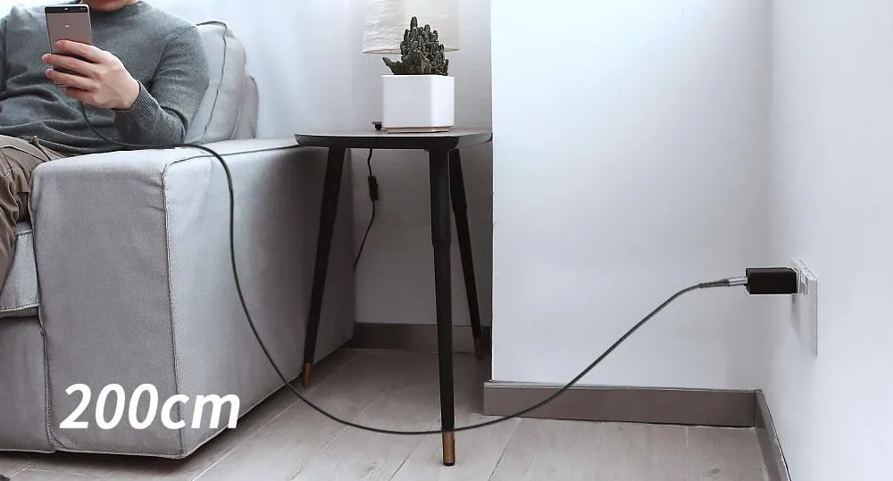 Gęsty nylonowy, sznurkowy oplot kabla USB Typu C, nie przeciera się, nie załamuje i chroni przewody wewnątrz.