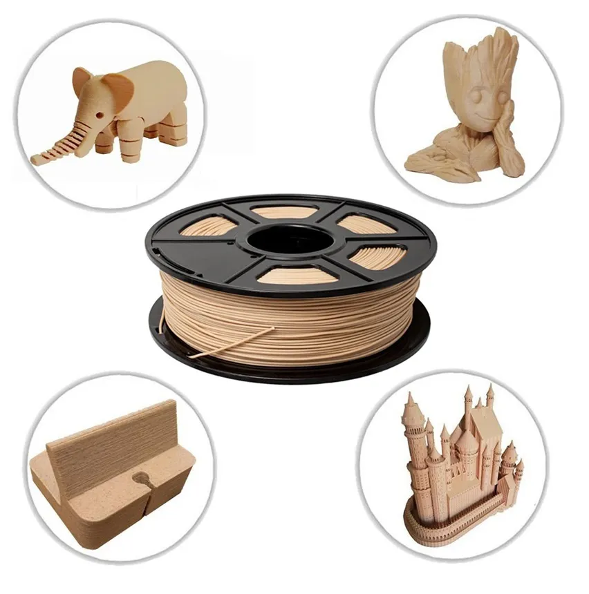 Dzięki zastosowaniu mieszanki mąki drzewnej oraz filamentu PLA otrzymano filament którego zapach przypomina woń drewna. Kształt i struktura filamentu przypominają drewno.