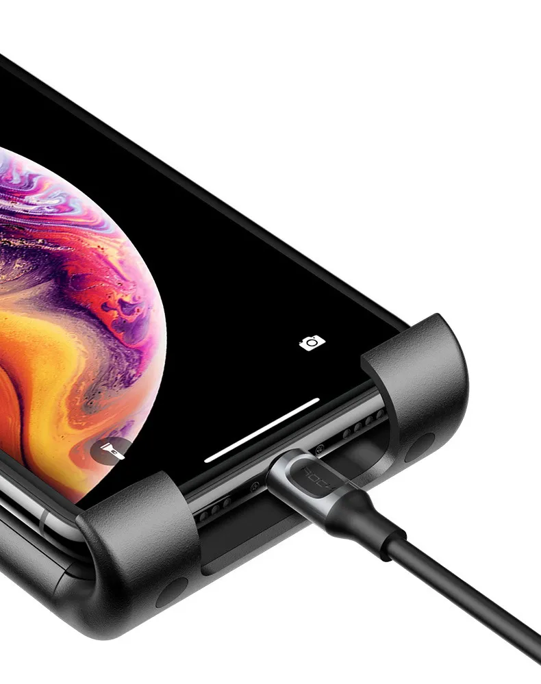 Rock uchwyt na zagłówek posiada wbudowane otwory na kable USB, umożliwiające ładowanie urządzeń.