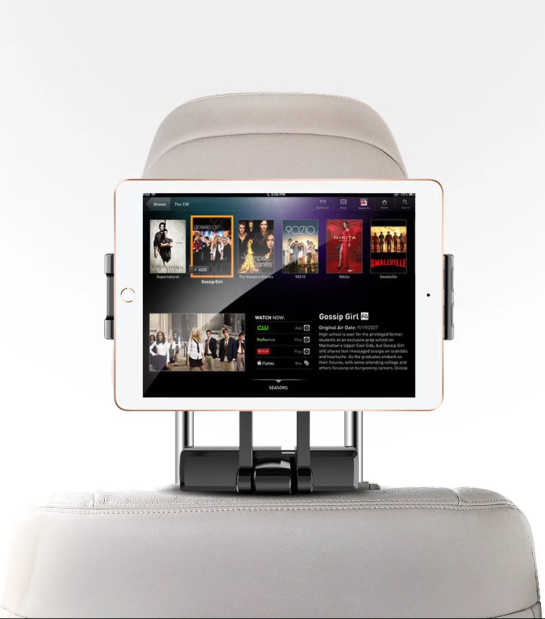 Uchwyt na zagłówek umożliwia zmienienie zagłówka w ekran telewizyjny za pomocą tabletu lub telefonu.
