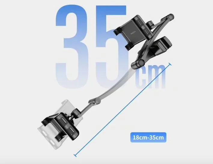 ✅ Uniwersalny, obrotowy uchwyt na zagłówek do tabletu telefonu posiada regulowane ramię na wysięgniku o zasięgu 18-35cm.