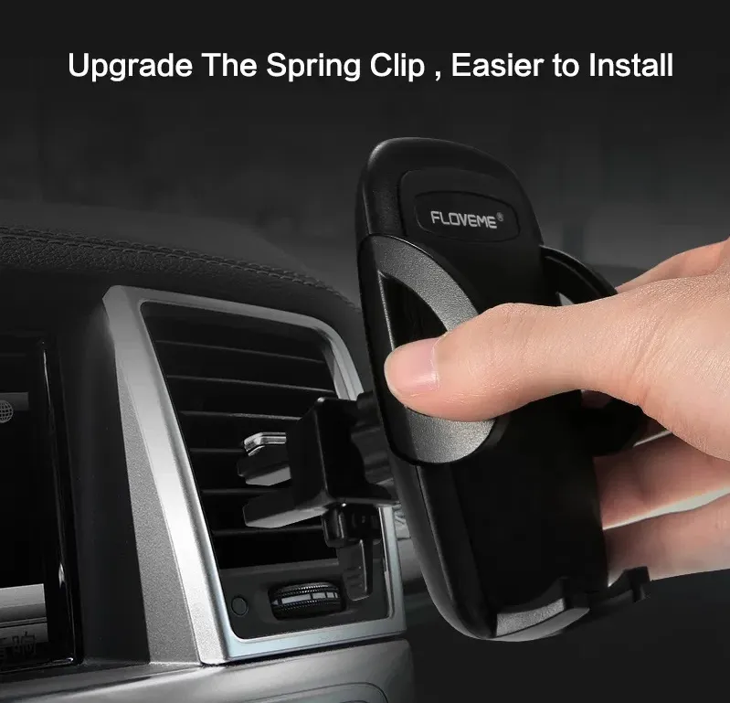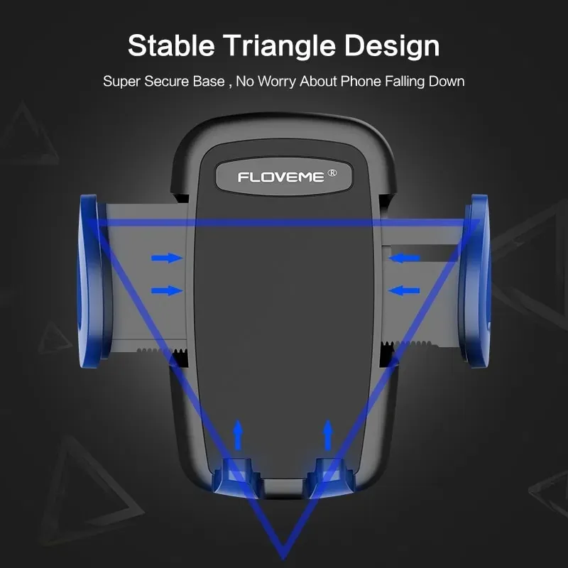 Uniwersalny uchwyt samochodowy Floveme zapewnia mocne utrzymanie telefonu podczas jazdy.