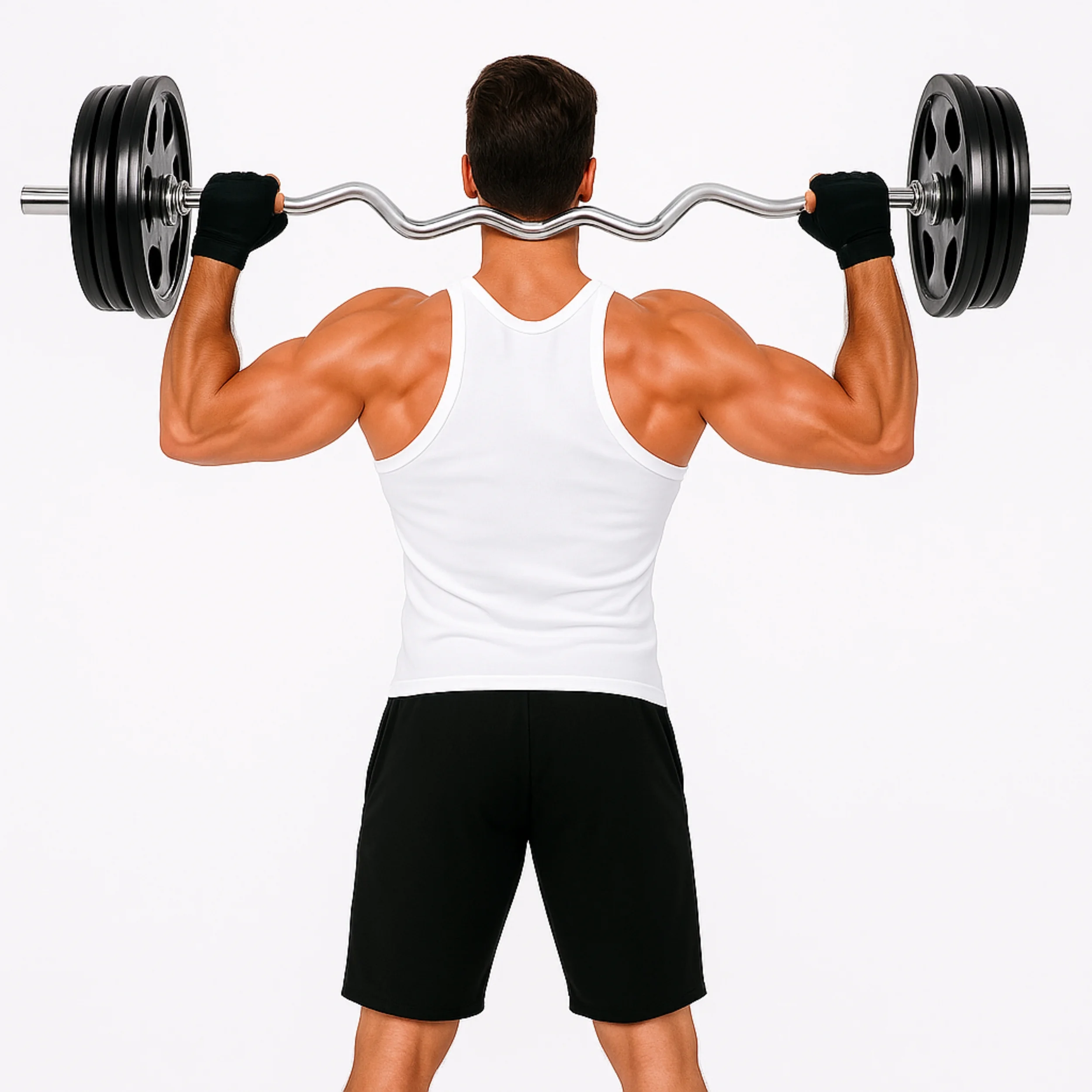 ▶️ Wyciskania na stojąco i ławce treningowej np. wyciskanie francuskie