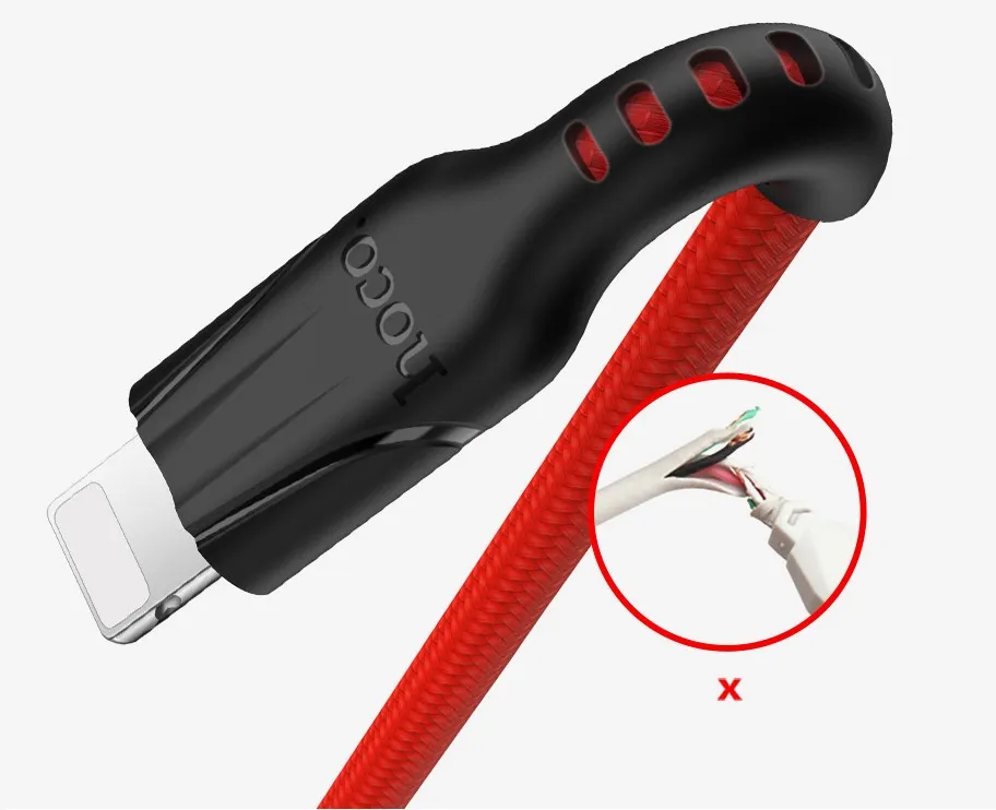 Kabel USB 3w1 Hoco posiada powłokę wykonaną z wytrzymałego nylonowego sznurkowego splotu, co sprawia że jest giętki, bardzo wygodny w użytkowaniu, a zarazem mocny i trwały.