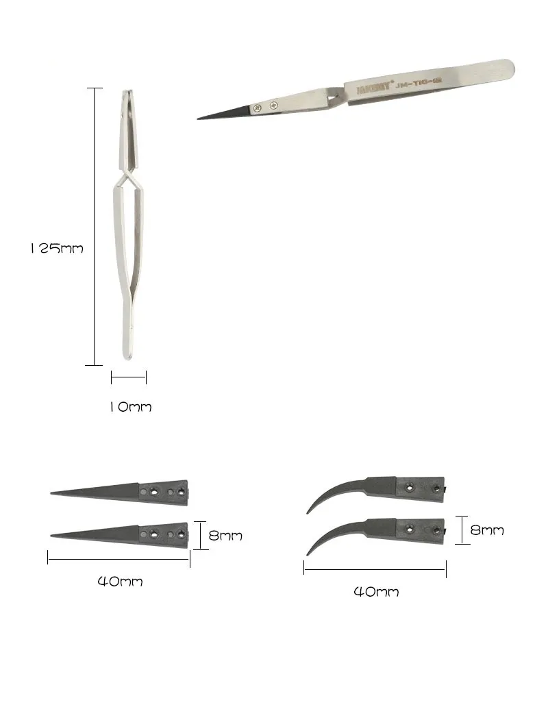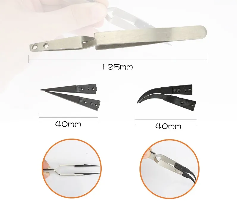 Końcówki wymienne, precyzyjne, odporne na temperaturę z włókna węglowego przeznaczone do wszechstronnych prac serwisowych z elementami wrażliwymi na ładunki elektrostatyczne.