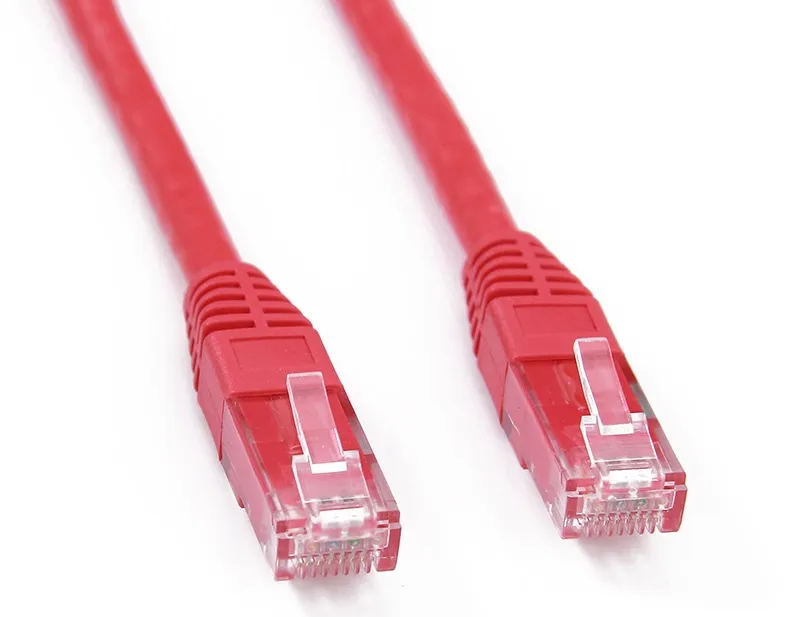 Solidnie wykonany czerwony kabel sieciowy z pozłacanymi wtykami i mocnym płaszczem
