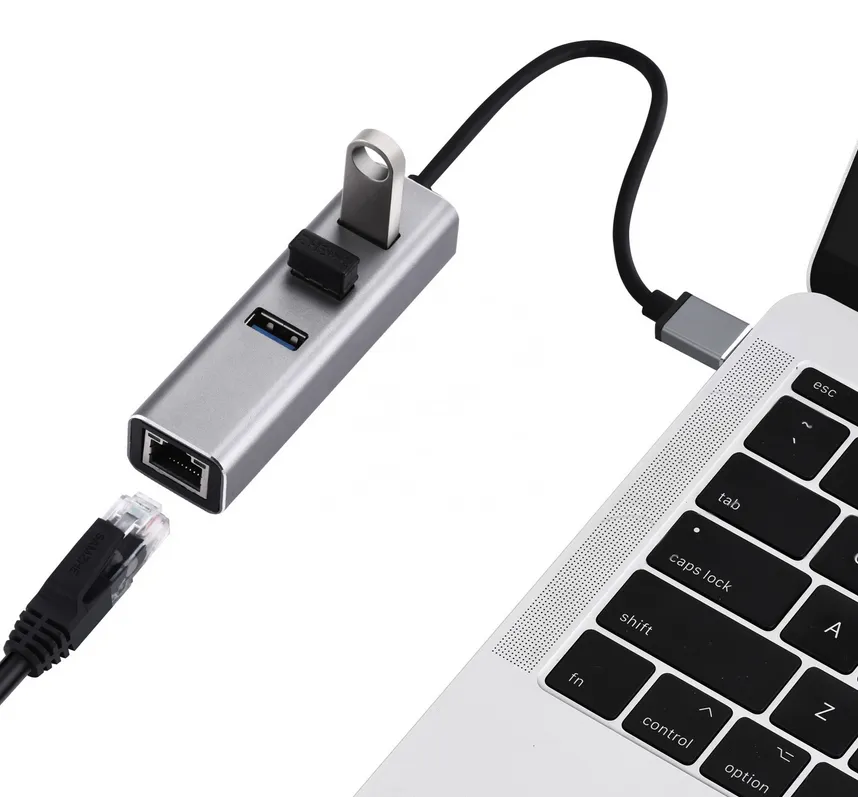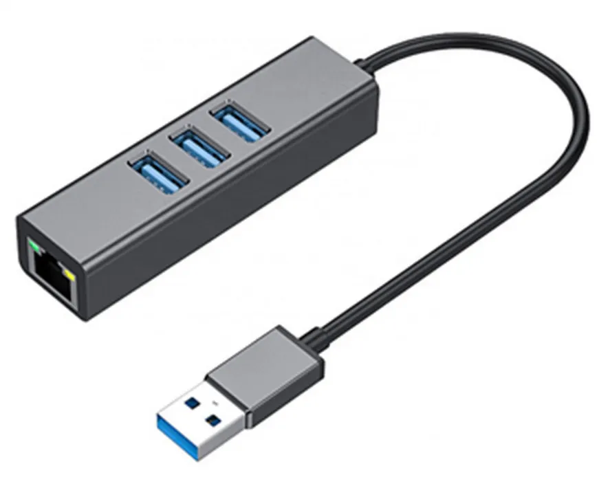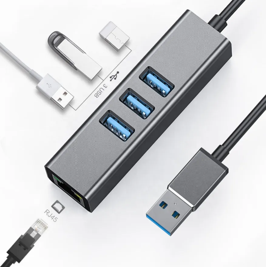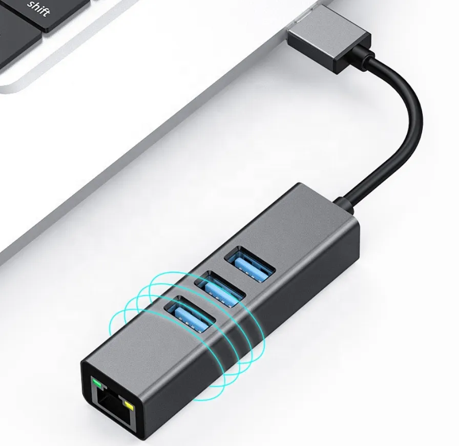 Adapter USB Hub Ethernet pozwoli podłączyć nam do 3 urządzeń USB-A do komputera lub laptopa, takich jak zewnętrzny dysk twardy, pamięć flash USB, mysz, klawiatura, słuchawki USB, głośniki , kamera internetowa USB itp.