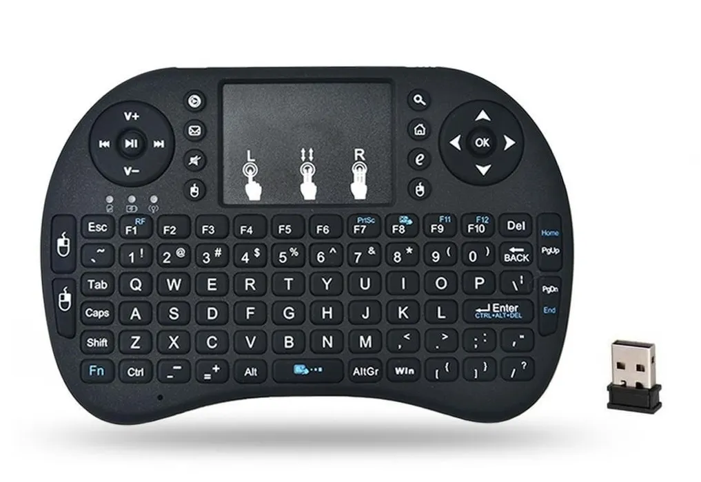 Multimedialna mini klawiatura smart tv I8 to elegancka, wielofunkcyjna, QWERTY z wbudowanym panelem dotykowym (myszka) obsługującym gesty oraz możliwością regulacji DPI.