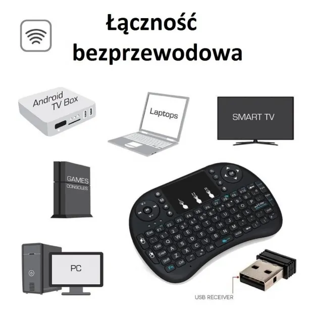 Urządzenie jest kompatybilne z komputerami PC, Mac, Raspberry Pi, tabletami, HTPC, Smart TV i Android TV BOX. Obsługuje także konsole Xbox, Sony PlayStation i inne urządzenia.