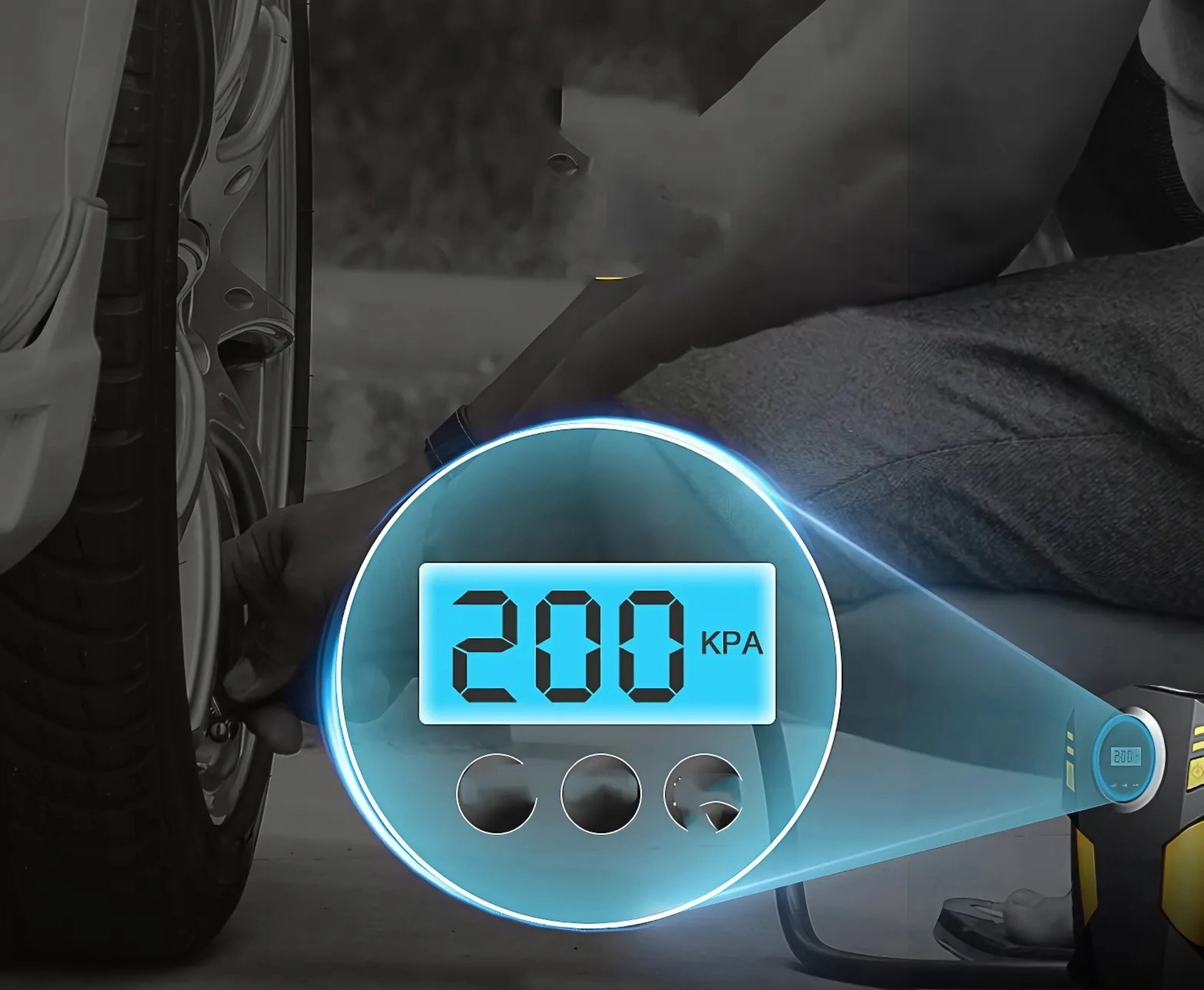 Nowoczesna pompka wyposażona jest w czytelny, cyfrowy wyświetlacz, który pozwala na łatwe sprawdzenie ciśnienia w oponach w różnych jednostkach: PSI, BAR, KPA oraz kg/c㎡. Dzięki temu szybko ustawisz odpowiednie wartości bez potrzeby korzystania z dodatkowych narzędzi.