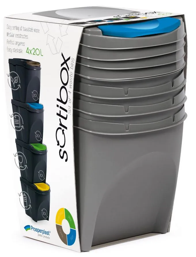 Przy planowaniu naszego centrum segregacji należy pamiętać, by gromadzić odpady, które cechują się takimi samymi właściwościami i charakterem.100% Oryginalny, Nowe kosze do segregacji Sortibox Prosperplast