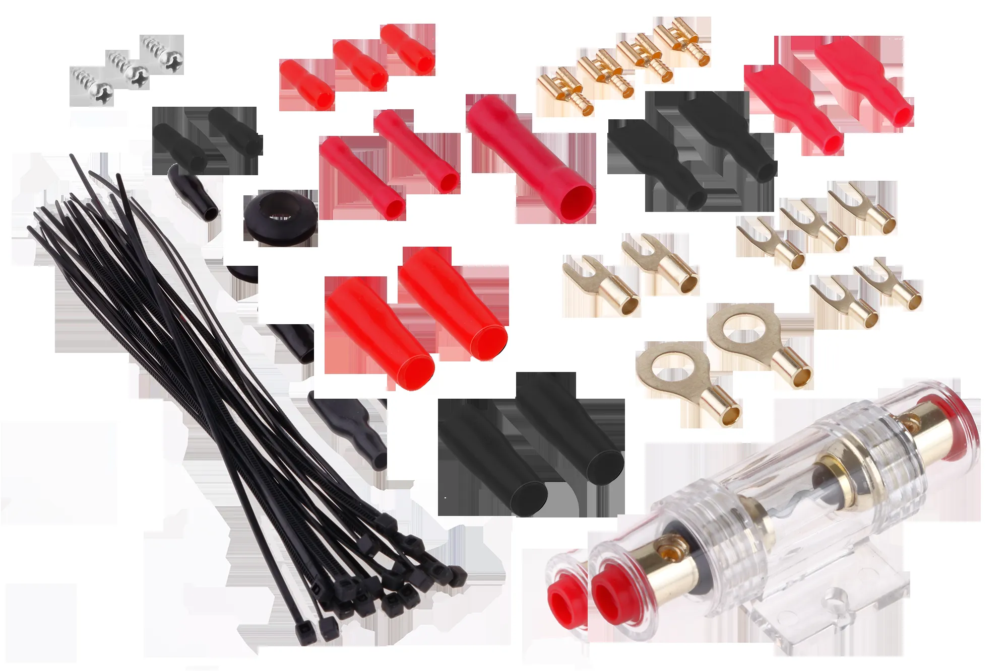 W zestawie znajduje się wszystko co potrzebne do montażu okablowania wzmacniacza. Duży zestaw jak na zdjęciu poniżej.