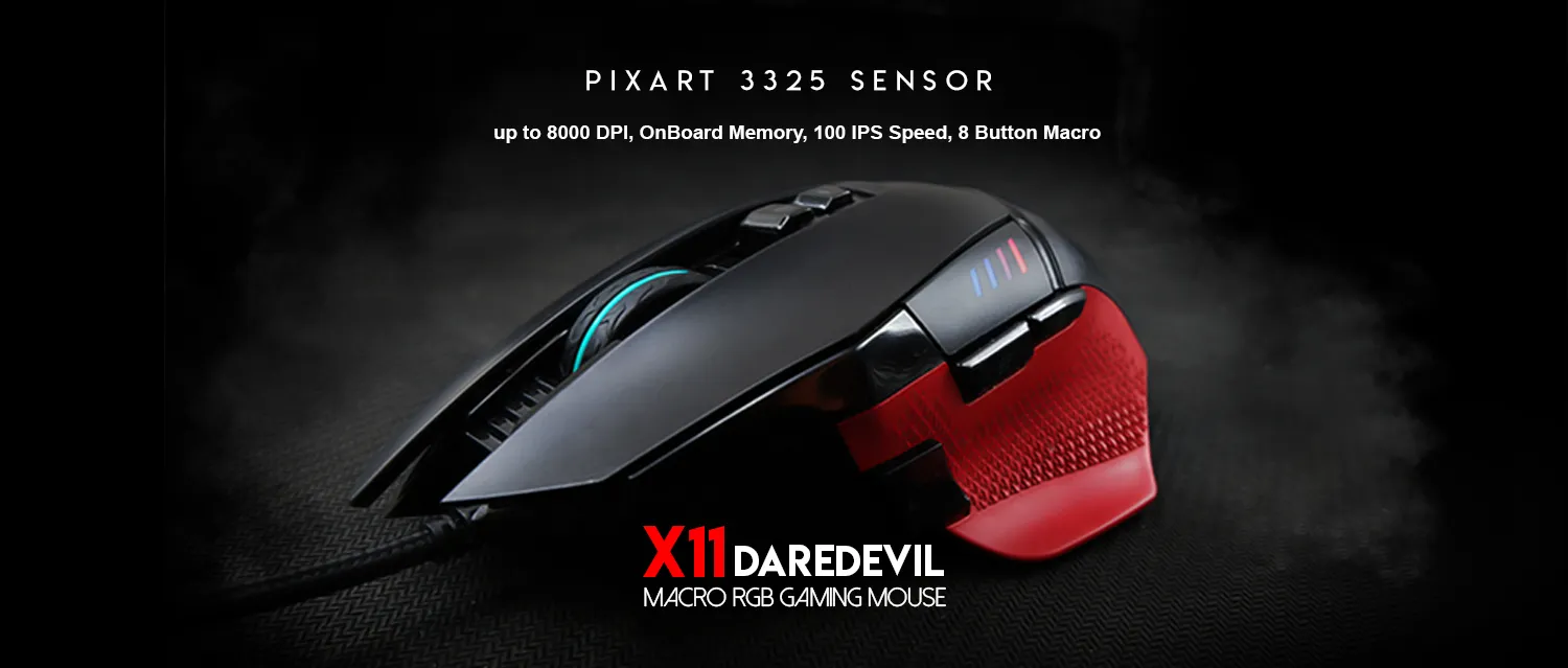 Mysz gamingowa programowalna dla graczy X11 DAREDEVIL posiada podświetlenie RGB CHROMA (16.8 mln kombinacji kolorów).