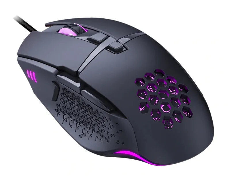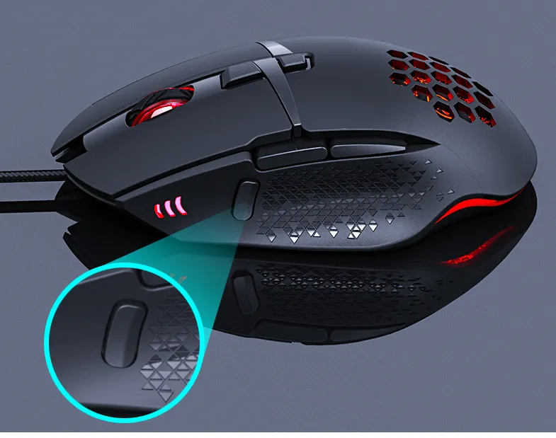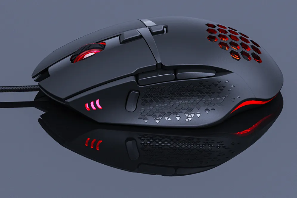 Mysz T90 Gamer posiada specjalnie zaprojektowany ergonomiczny kształt dla wygody długotrwałego użytkowania. Nowoczesne wycięcia w kształcie plastra miodu oraz podświetlenie LED sprawia że świetnie prezentuje się na biurku.