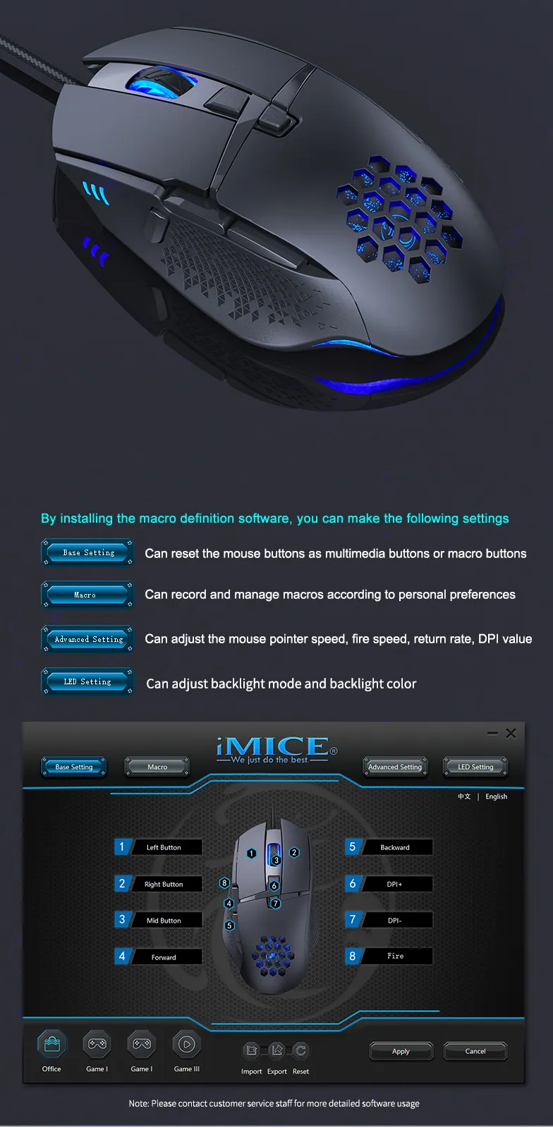 Myszka iMICE T90 Gamer posiada aż 8 programowalnych przycisków.