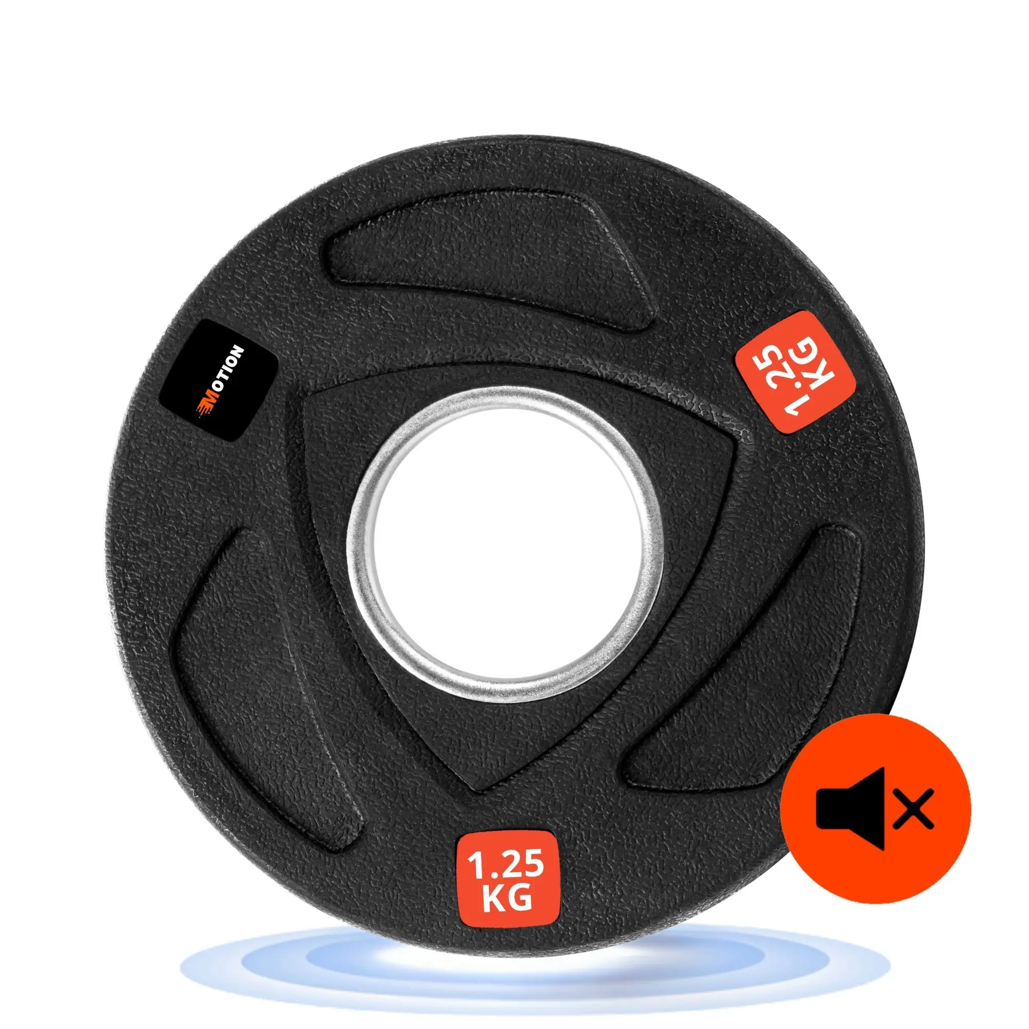 Dzięki wysokiej jakości gumowanej powłoce, obciążenia olimpijskie MOTION skutecznie tłumią uderzenia i dźwięki powstające podczas odkładania ich na podłogę, zmiany talerzy na gryfie czy przypadkowego kontaktu z innymi elementami sprzętu.