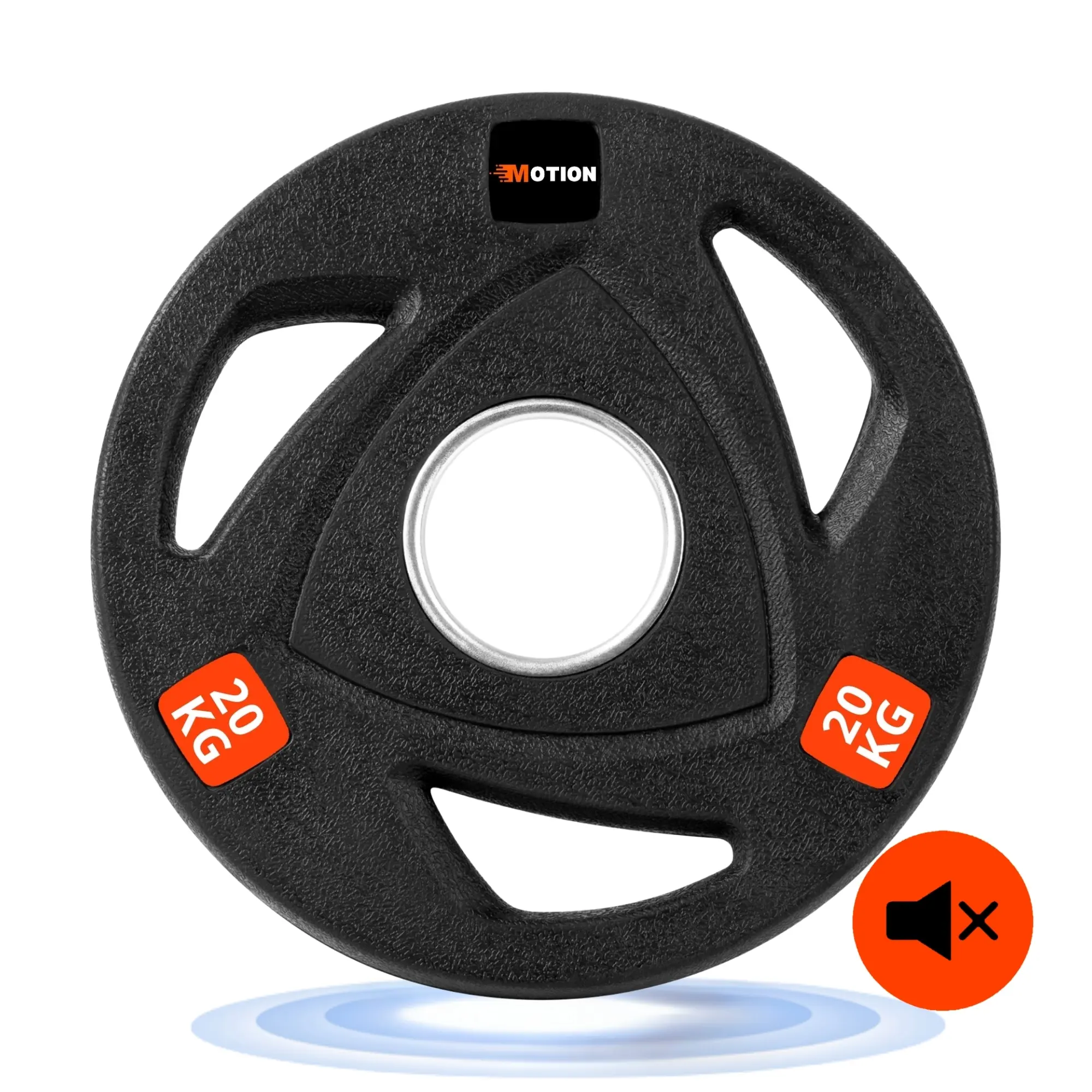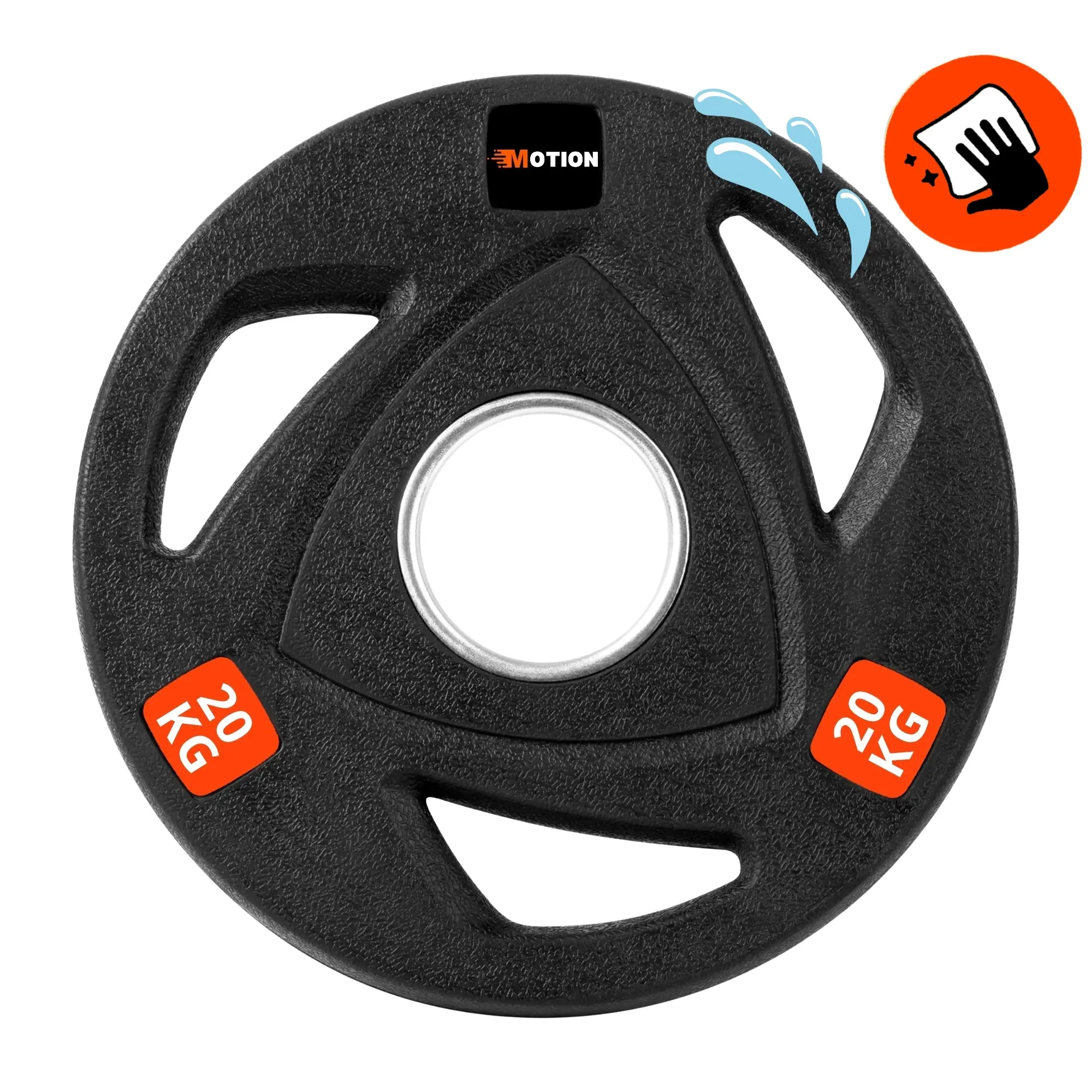 Dzięki wysokiej jakości gumowanej powłoce, obciążenia olimpijskie MOTION skutecznie tłumią uderzenia i dźwięki powstające podczas odkładania ich na podłogę, zmiany talerzy na gryfie czy przypadkowego kontaktu z innymi elementami sprzętu.