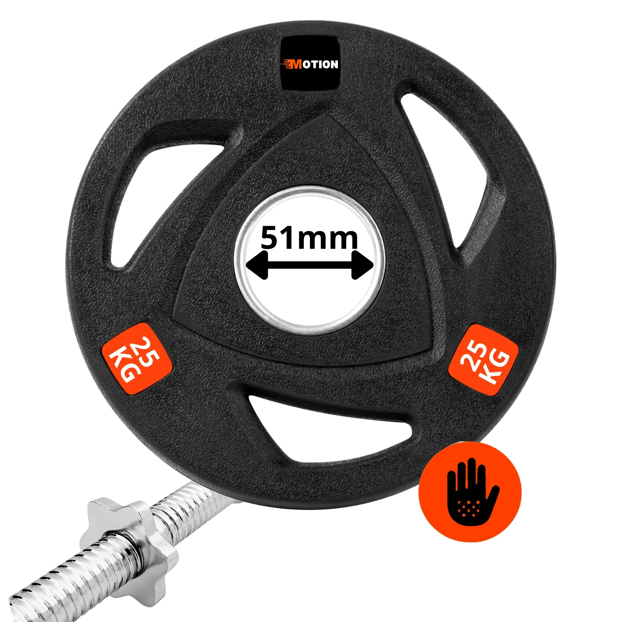 Dzięki otworowi o średnicy 51 mm, obciążenie MOTION spełnia wymogi standardu olimpijskiego, co oznacza pełną kompatybilność ze wszystkimi gryfami olimpijskimi o średnicy 50 mm. To uniwersalne rozwiązanie sprawia, że talerze możesz swobodnie wykorzystywać zarówno w treningu domowym, jak i w profesjonalnych siłowniach.
