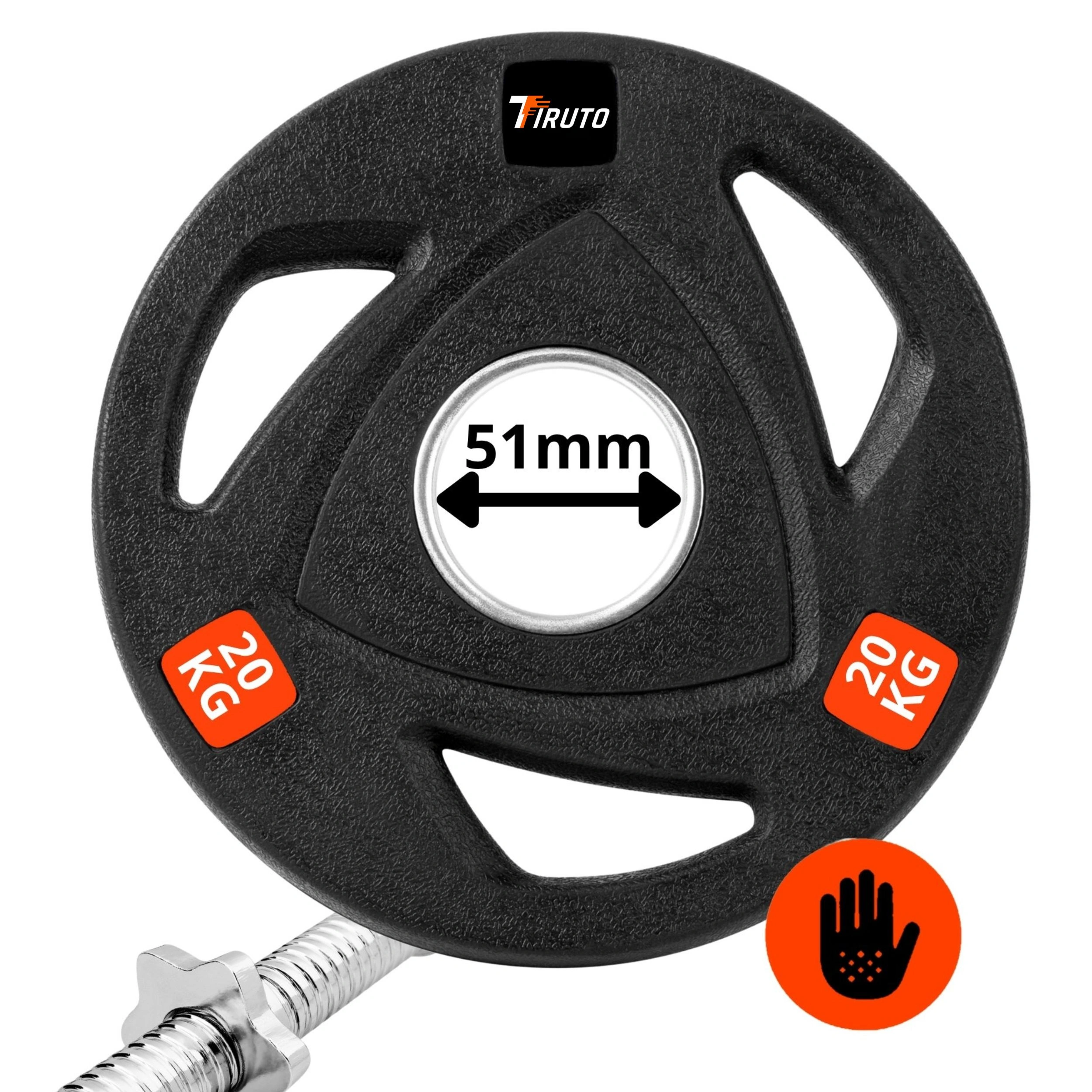 Dzięki otworowi o średnicy 51 mm, obciążenie TIRUTO spełnia wymogi standardu olimpijskiego, co oznacza pełną kompatybilność ze wszystkimi gryfami olimpijskimi o średnicy 50 mm. To uniwersalne rozwiązanie sprawia, że talerze możesz swobodnie wykorzystywać zarówno w treningu domowym, jak i w profesjonalnych siłowniach.