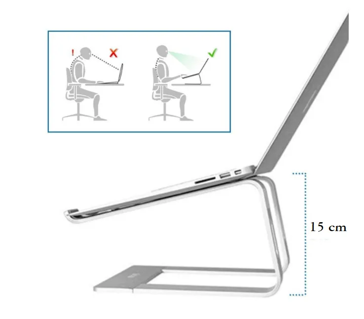 Dogodna pozycja ekranu laptopa nie naraża nas na ciągłe garbienie się, co zapobiega bólom kręgosłupa.