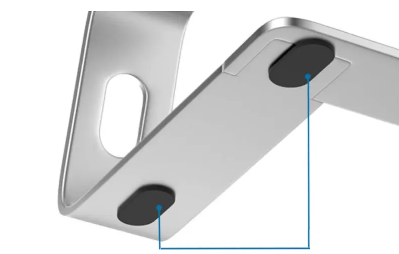 Silikonowe podkładki antypoślizgowe zamontowane są zarówno na nóżkach, jak i na podstawce stabilizującej laptop.