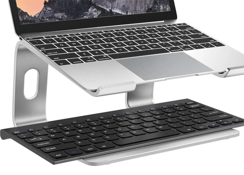 Podstawka umożliwia bardziej ergonomiczne ustawienie laptopa co ułatwia zachowanie prawidłowej postawy ciała przy biurku.