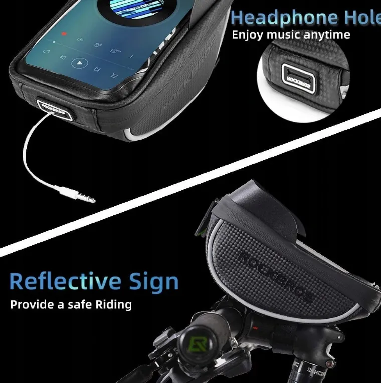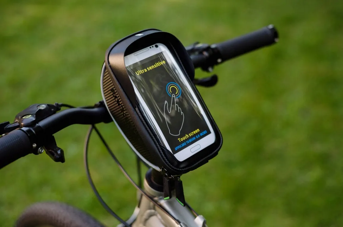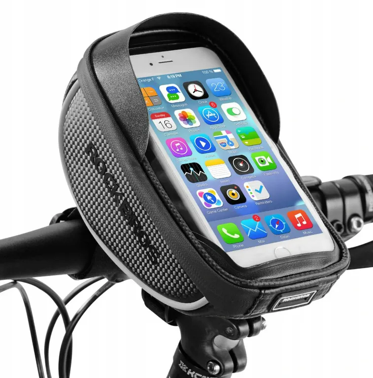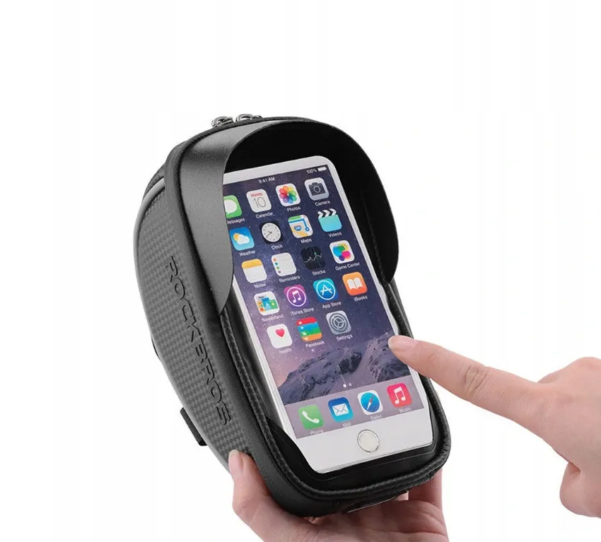Etui montowane jest na kierownicę roweru, która jest jednocześnie podręcznym schowkiem oraz pokrowcem na naszego smartfona.