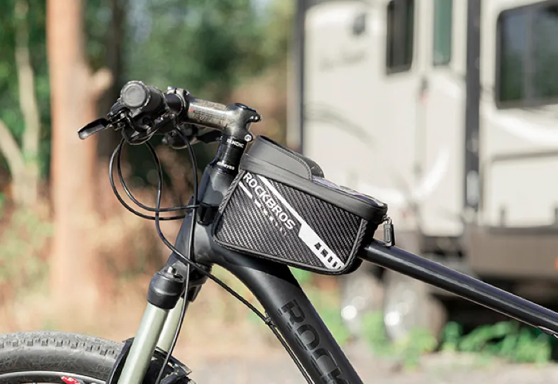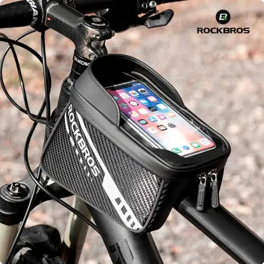 Etui montowane jest na ramę roweru, która jest jednocześnie podręcznym schowkiem oraz pokrowcem na naszego smartfona.