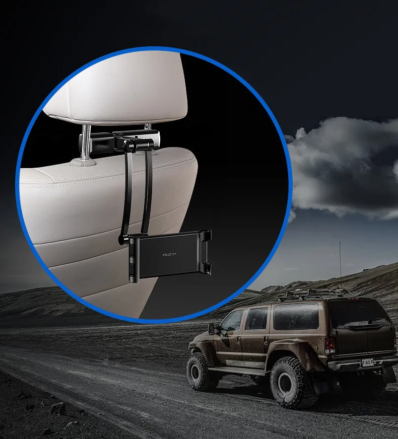 Uchwyt na zagłówek do tabletu Rock umożliwia zmienienie zagłówka w ekran telewizyjny za pomocą tabletu lub telefonu.