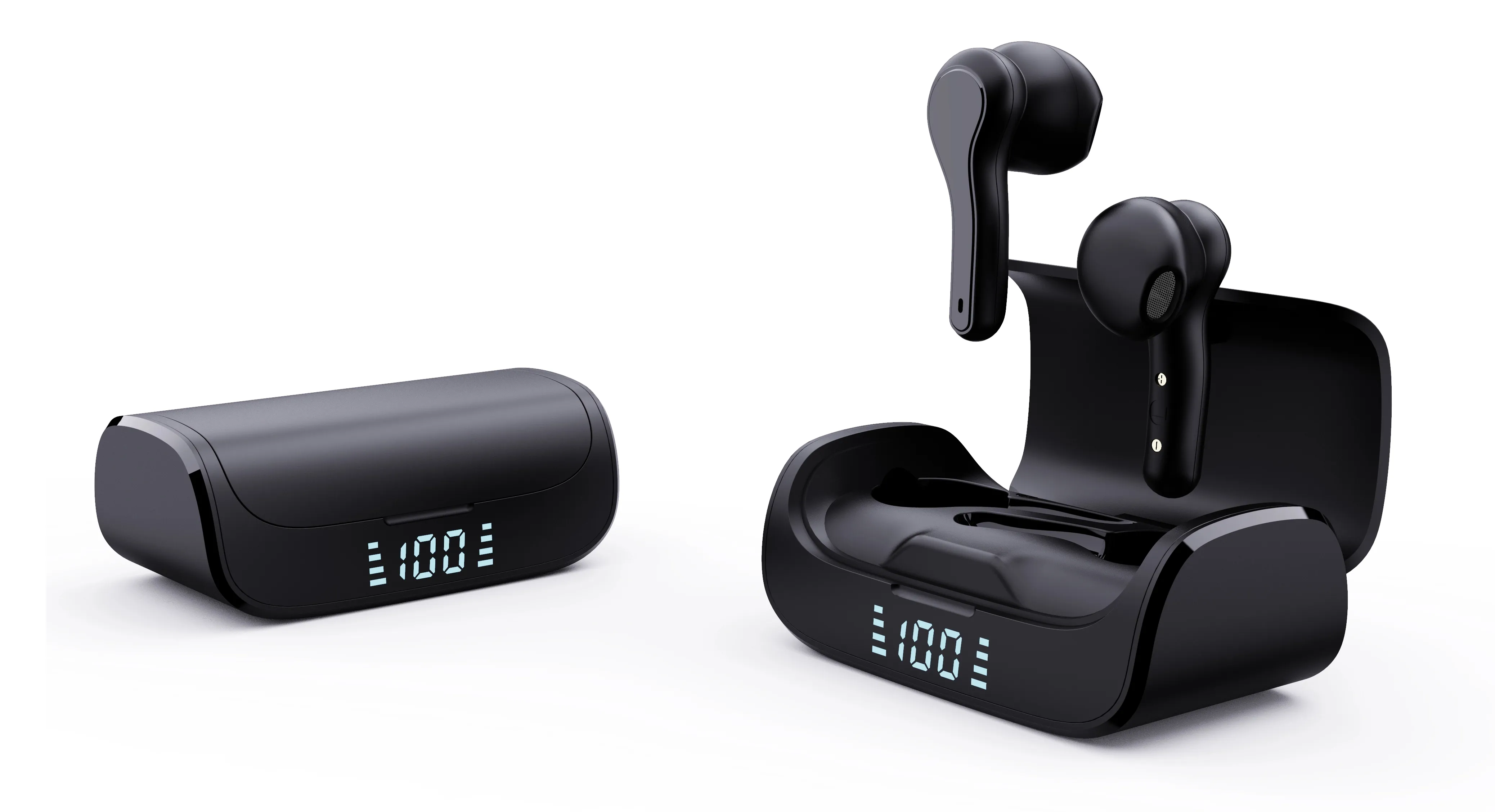 Pojemny akumulator pozwala na kilkukrotne szybkie ładowanie słuchawek. Wyświetlacz LED informuje o stanie naładowania etui oraz słuchawek.