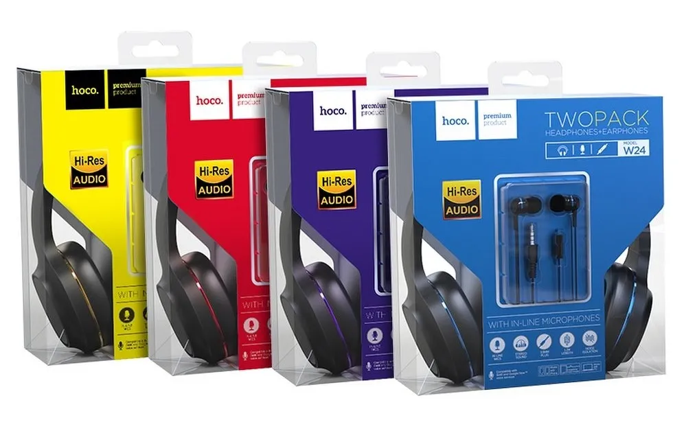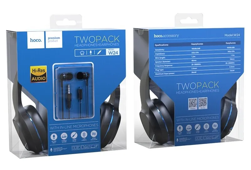 Słuchawki nauszne i douszne Hoco W24 zostały zaprojektowane, aby zapewnić głęboki i krystaliczny dźwięk.