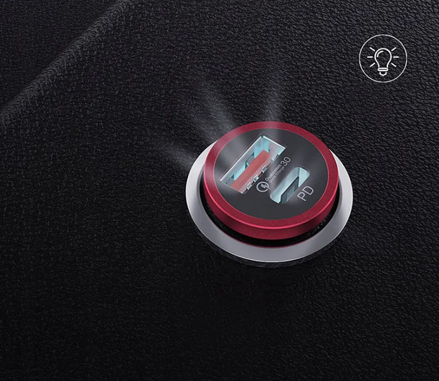 Ładowarka o napięciu wejściowym z zakresu 12-24V kompatybilna z 99% portami zapalniczek samochodowych.