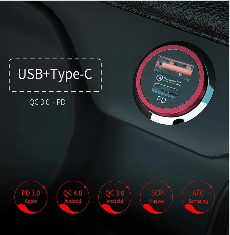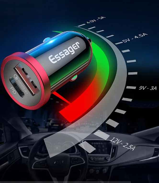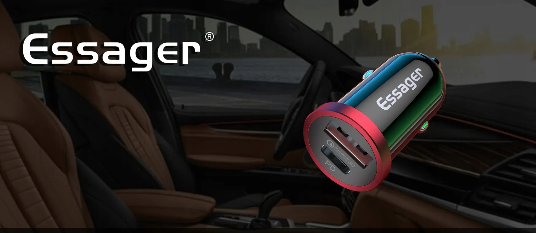 100% Oryginalna ładowarka samochodowa Essager QC 4.0 PD USB-C