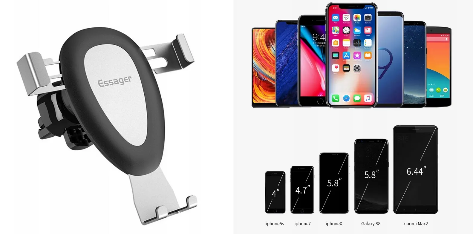 Uchwyt samochodowy na telefon Essager jest kompatybilny z każdym urządzeniem o szerokości od 57 do 83 mm i grubości do 11mm.