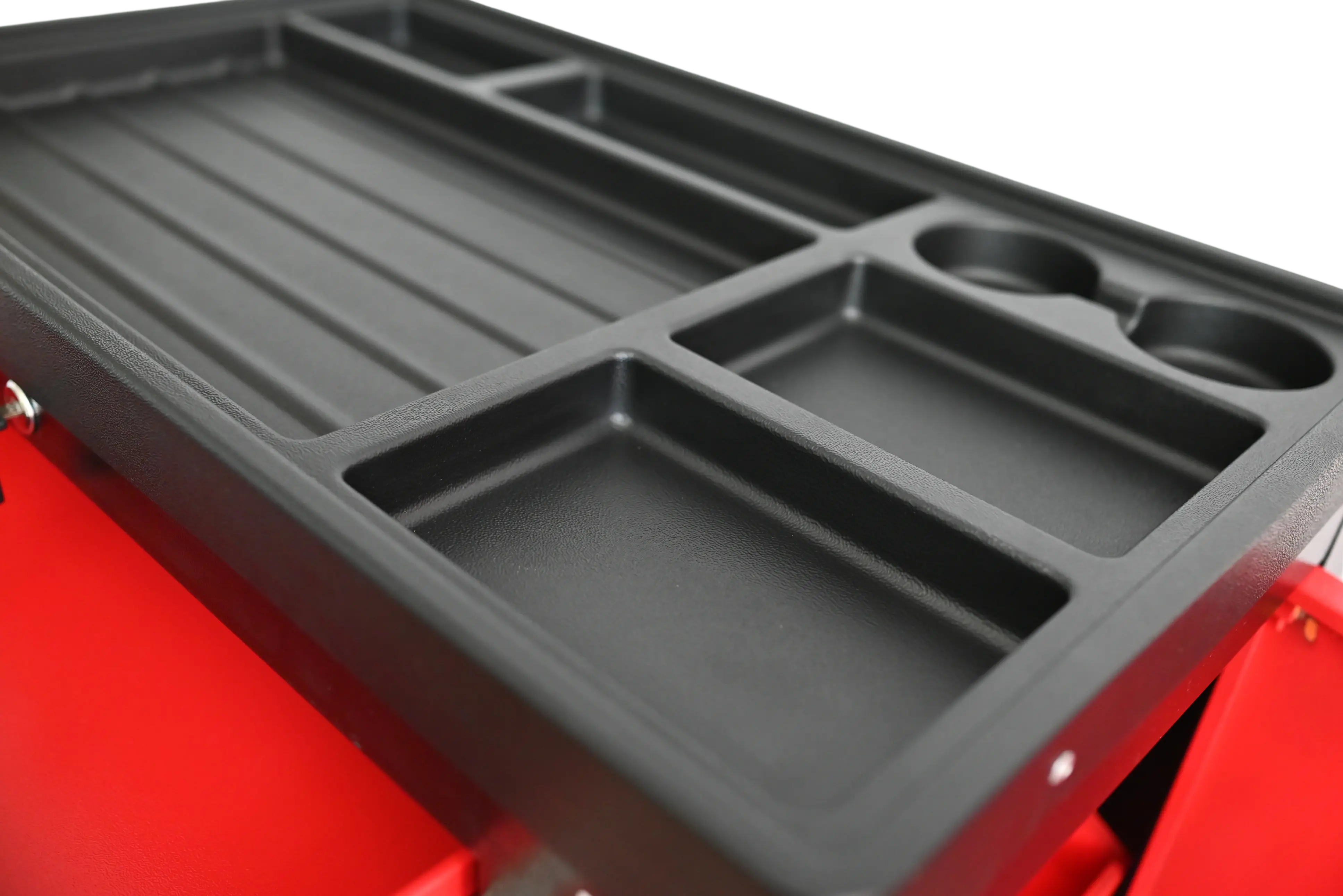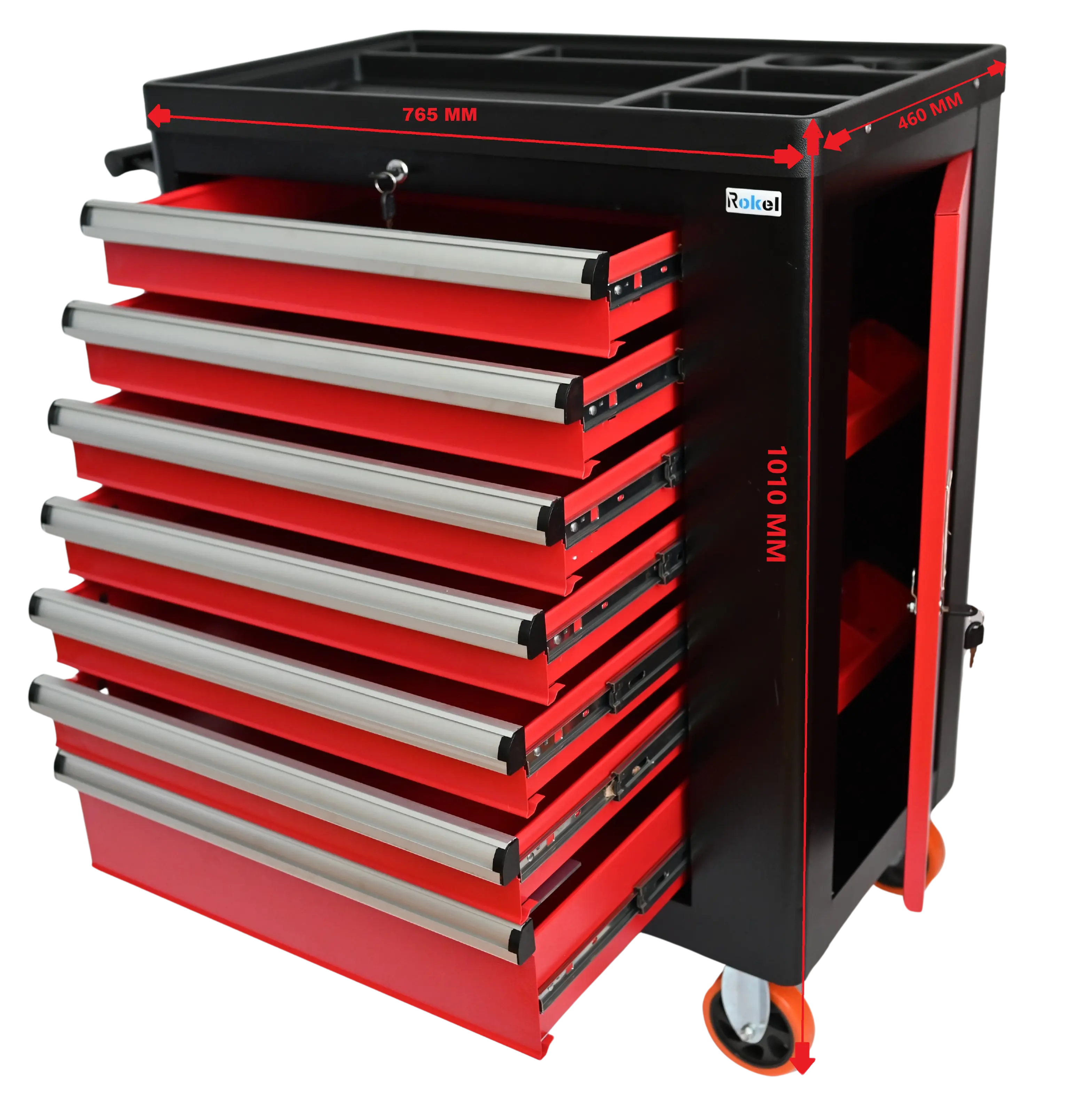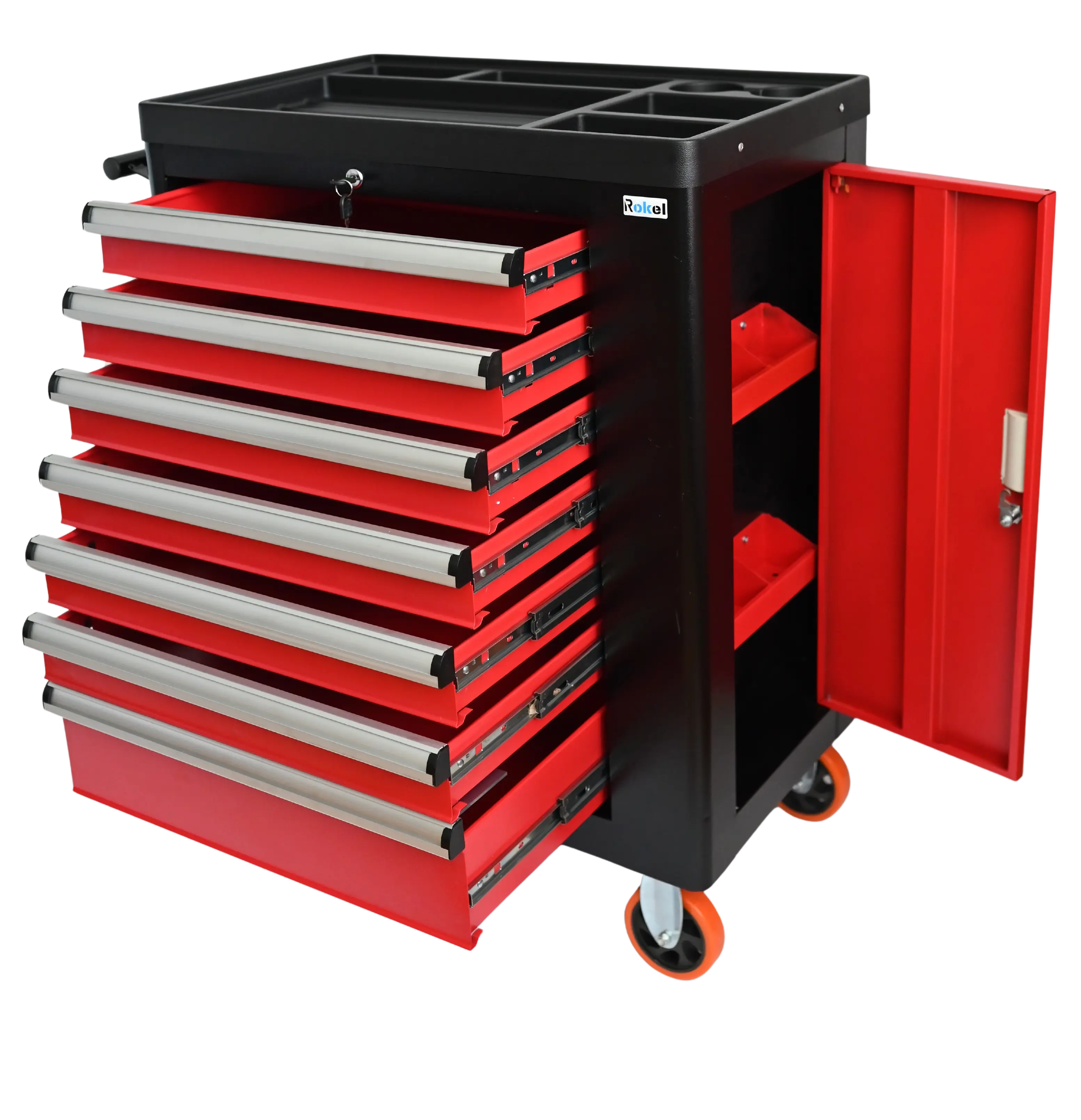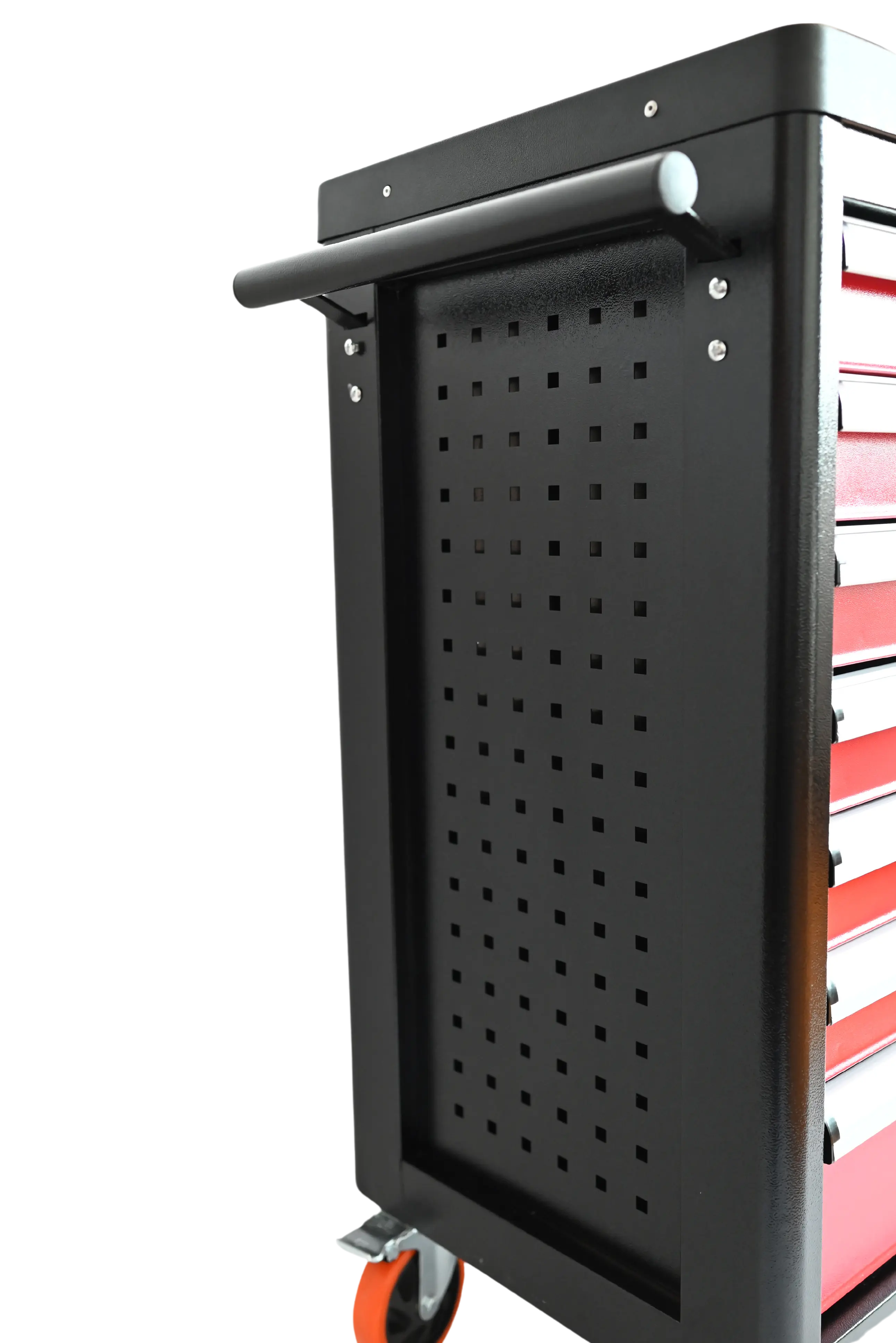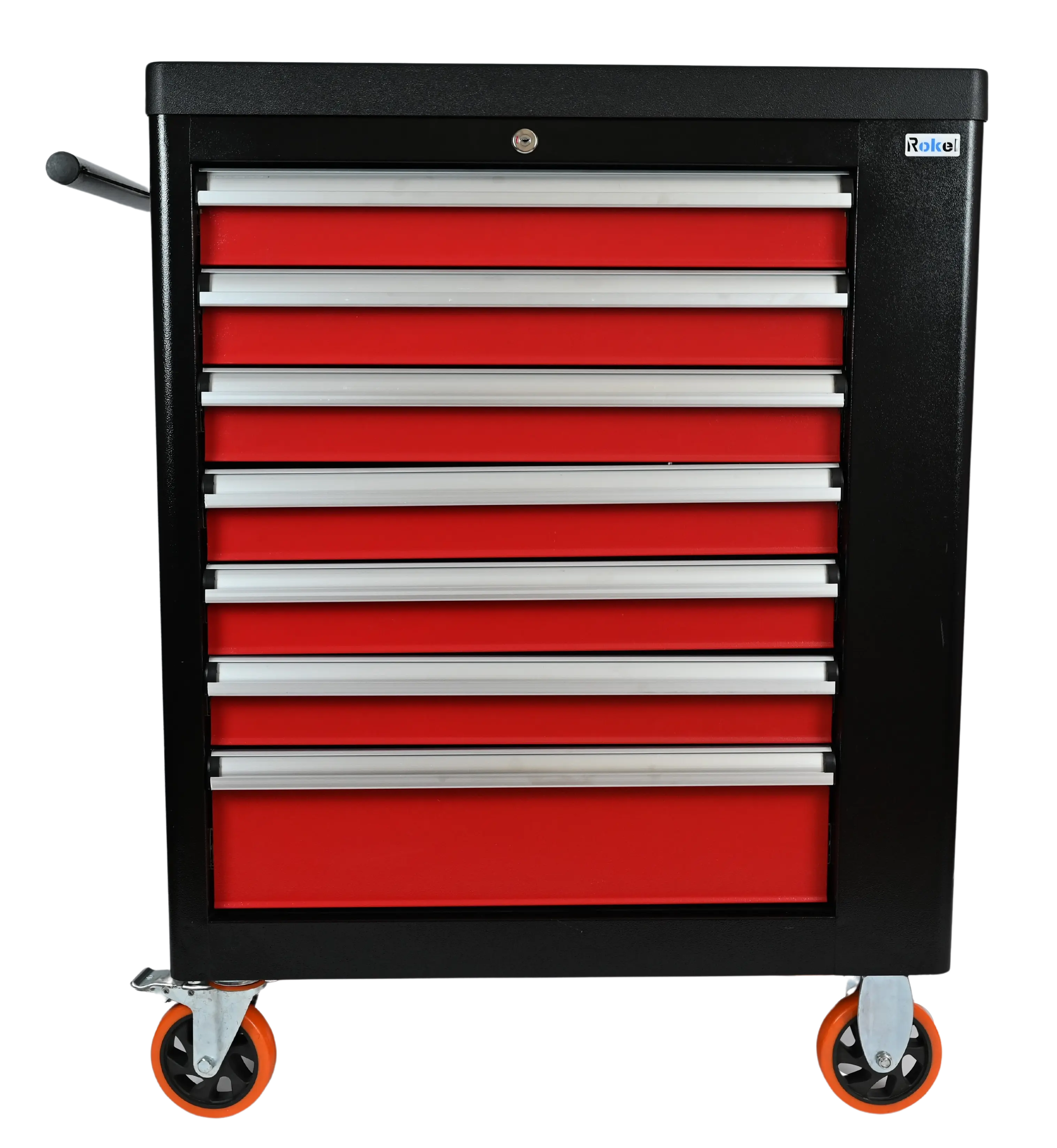 Profesjonalny wózek warsztatowy przeznaczony dla specjalistów, który doskonale wpasuje się w każdy garaż, domowy warsztat czy gospodarstwo rolne. Konstrukcja wózka oparta jest na 7 praktycznych szufladach, każda z nich działa na wydajnych łożyskach kulkowych, co zapewnia płynne i łatwe wysuwanie. Dodatkowo wszystkie szuflady na raz zabezpieczone są zamkiem.