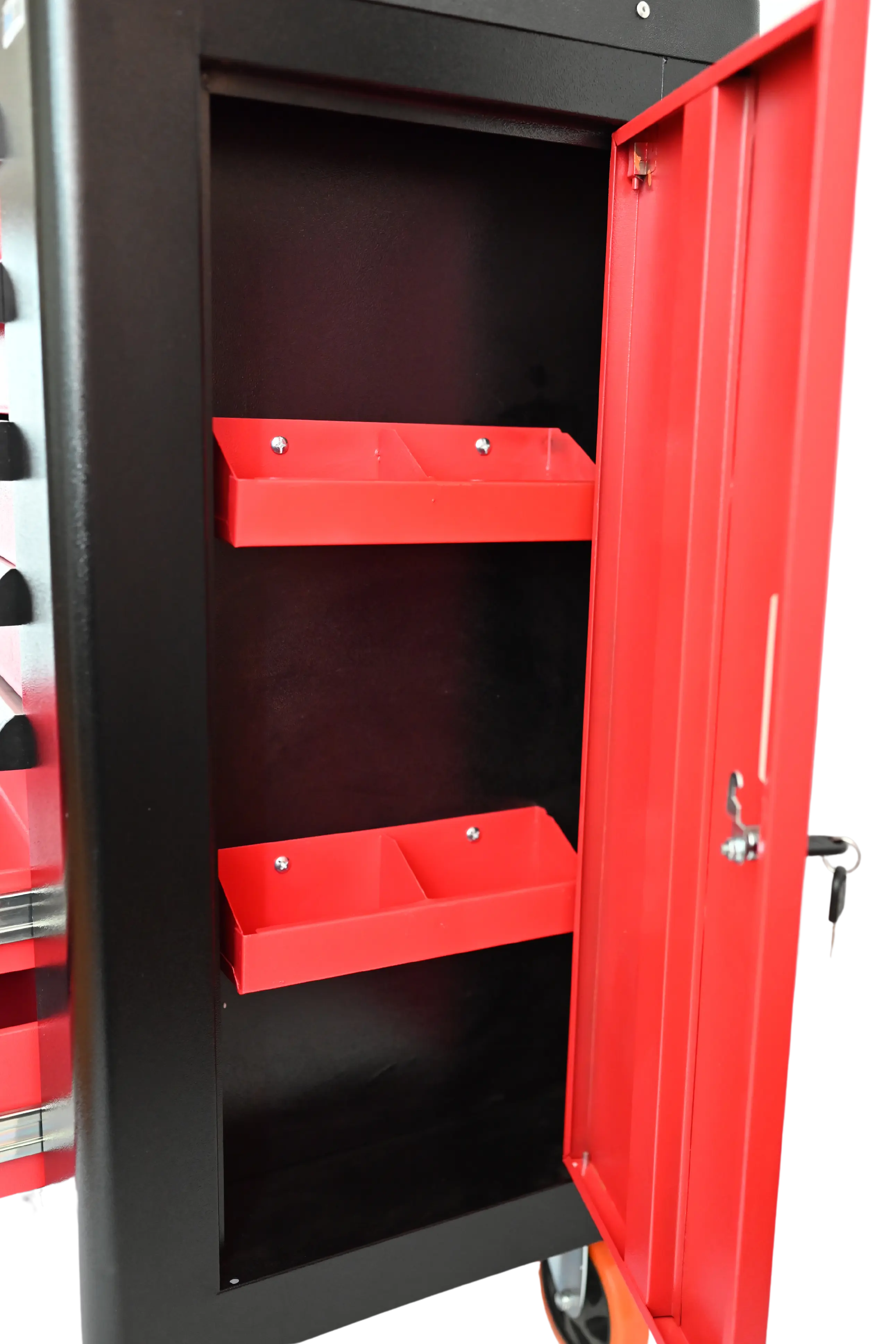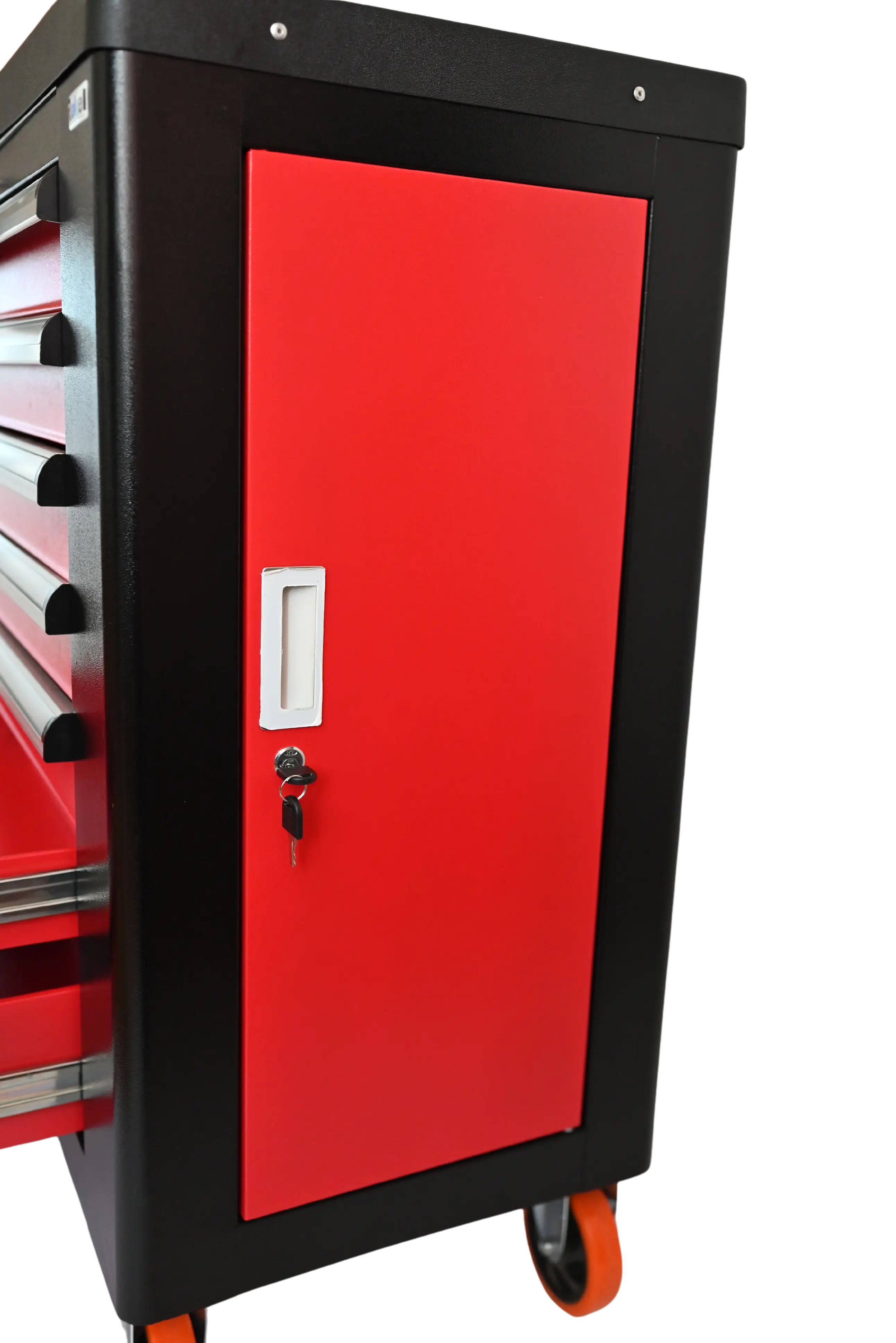 Ale to nie wszystko! Dodatkowo, obok głównego segmentu, znajduje się boczna szafka. Idealna do przechowywania drobniejszych akcesoriów lub specjalistycznych narzędzi, zamykana jest na odrębny klucz. To dodatkowy poziom zabezpieczenia, który pozwala na segregację i indywidualne zabezpieczanie narzędzi.