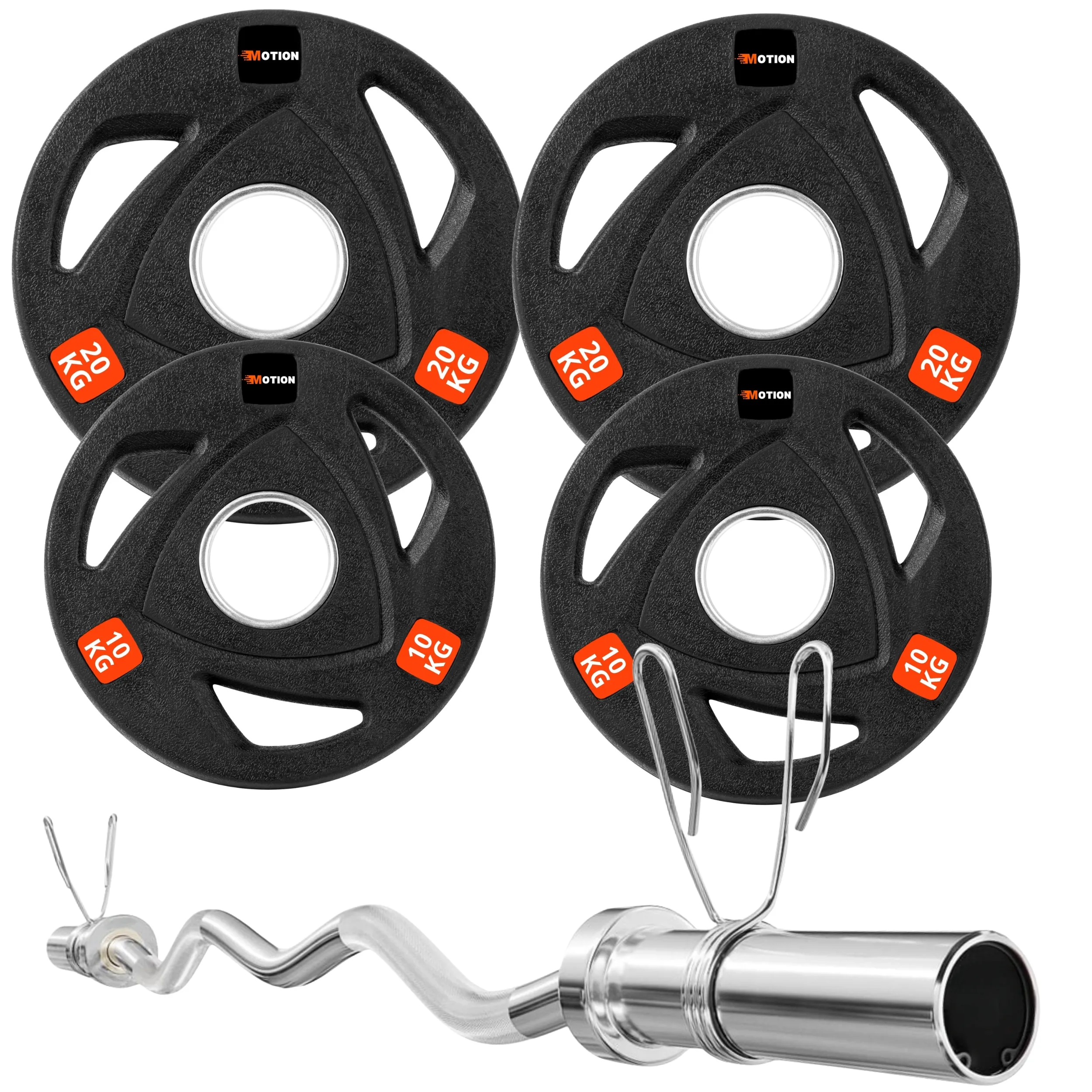 🏋️ Solidne obciążenia MOTION – żeliwne talerze, trwałe i odporne na uszkodzenia.